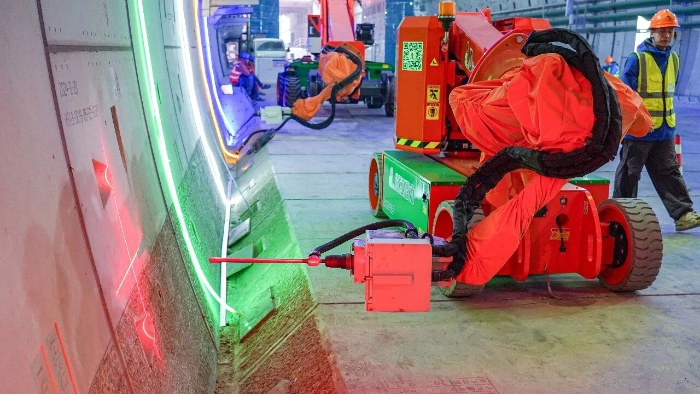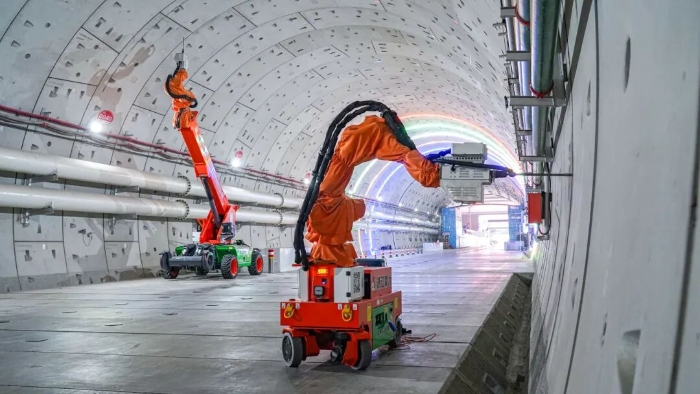 近期,隨著項(xiàng)目推進(jìn),隧道內(nèi)部開(kāi)始進(jìn)入機(jī)電安裝、管線敷設(shè)階段,需在堅(jiān)硬的混凝土管片上進(jìn)行數(shù)以萬(wàn)計(jì)的高精度鉆孔。粉塵控制、高空作業(yè)安全、毫厘不差的精度要求,在密閉、富水的超長(zhǎng)隧道空間中,被無(wú)限放大。