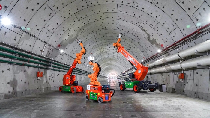 在海太隧道內(nèi)部,鼎力打孔機(jī)器人的應(yīng)用,正在重新定義“鉆孔”這道工序的標(biāo)準(zhǔn)。以往,這是一項(xiàng)需要搭設(shè)腳手架、工人佩戴沉重防塵面罩、手持高頻振動(dòng)鑿巖機(jī)進(jìn)行的體力與耐力比拼。工人暴露在粉塵、噪音和高空墜落的多重風(fēng)險(xiǎn)下,且鉆孔質(zhì)量與效率高度依賴(lài)個(gè)人經(jīng)驗(yàn)和體能狀態(tài),如今場(chǎng)景已然改變。